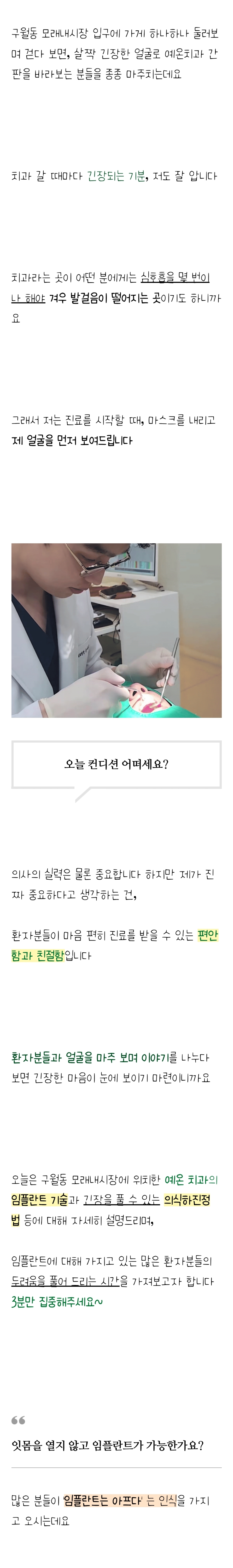 “저희가 부담하는 임플란트 비용의 70%는 재료비입니다. 따라서 너무 저렴한 가격을 제시하는 곳은 재료 품질을 의심해 봐야 합니다.” – B치과 원장 인터뷰 중